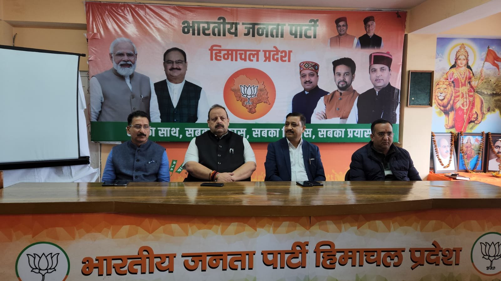 भाजपा प्रदेश अध्यक्ष सुरेश कश्यप, सह चुनाव प्रभारी देविंद्र सिंह राणा, संगठन महामंत्री पवन राणा और प्रदेश उपाध्यक्ष संजीव कटवाल ने भाजपा मुख्यालय दीपकमल चक्कर में प्रधानमंत्री नरेंद्र मोदी के मन की बात कार्यक्रम को देखा।