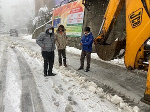 उपायुक्त शिमला आदित्य नेगी ने आज लगातार बर्फबारी के मध्य शहर में छोटा शिमला, Khalini, Panthaghati, Mehli-Shoghi bypass, Tutu, Boileauganj and Tutikandi सड़कों का जायजा लिया तथा राहत कार्यों के लिए आवश्यक दिशा निर्देश दिए ताकि स्थानीय लोगों को कोई दिक्कत ना हो.