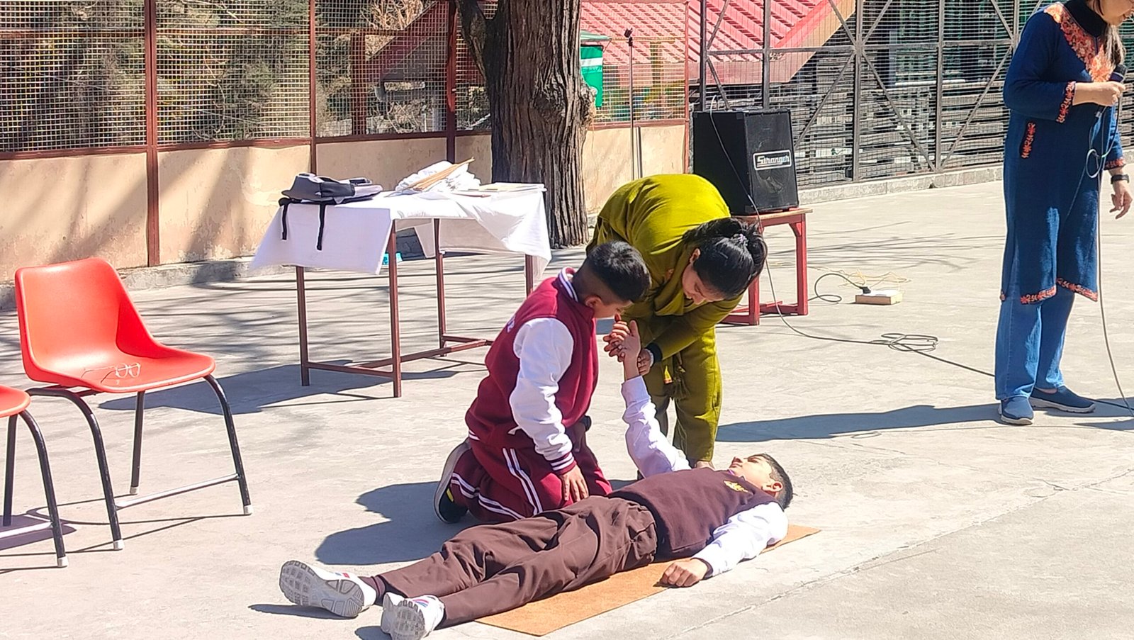 कार्यशाला के दौरान शिक्षकों और विद्यार्थियों ने उत्साहपूर्वक भाग लेते हुए सभी अभ्यासों में सक्रिय सहभागिता निभाई, जिससे उन्हें प्राथमिक उपचार की प्रक्रियाओं को समझने और अपनाने का आत्मविश्वास मिला।