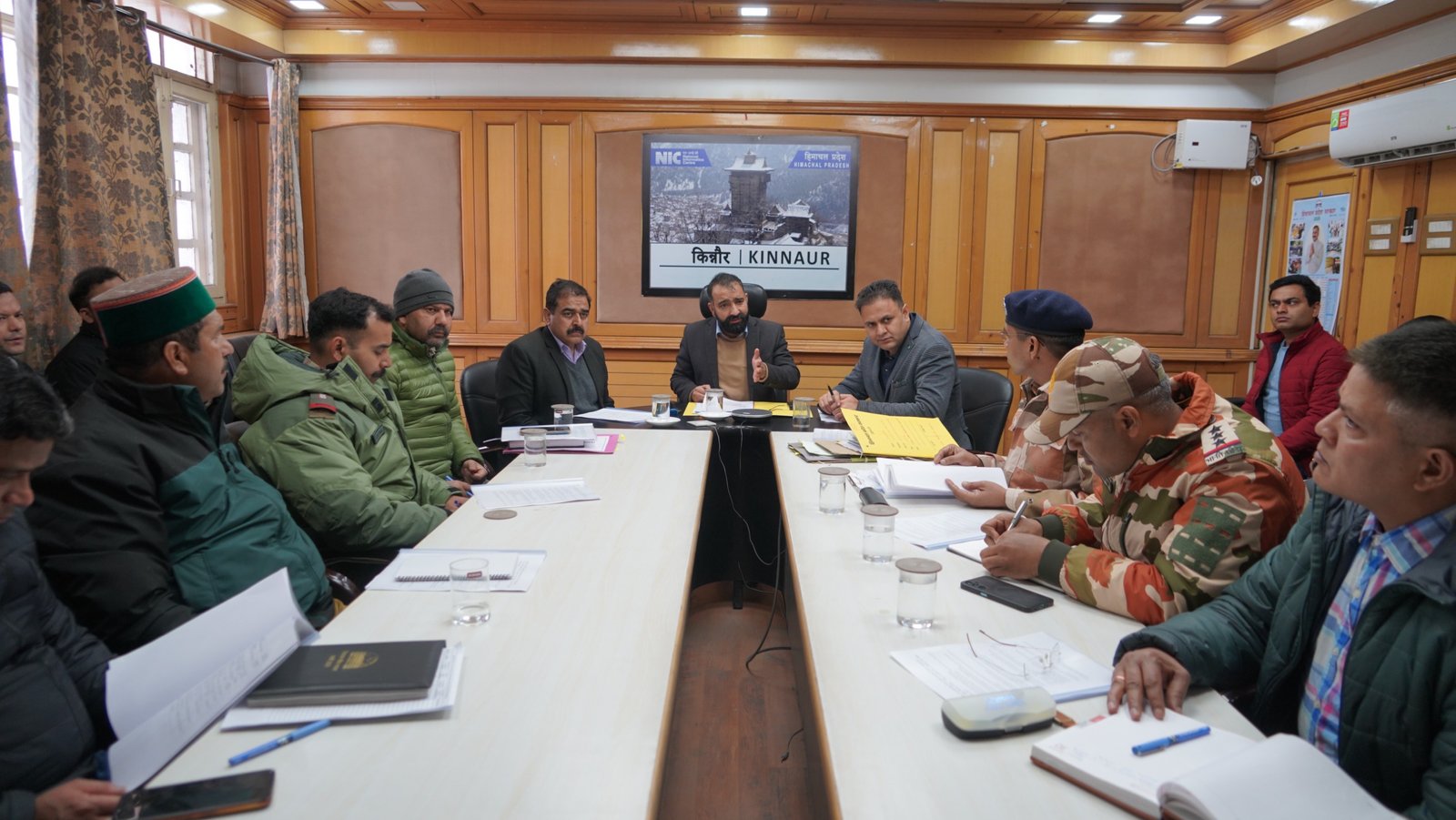 बैठक में पुलिस अधीक्षक किन्नौर सुशील कुमार शर्मा, अतिरिक्त जिला दंडाधिकारी पूह रवींद्र सिंह ठाकुर, सहायक आयुक्त विपिन ठाकुर, महाप्रबंधक जिला उद्योग केंद्र गुरु लाल नेगी, मुख्य चिकित्सा अधिकारी डॉ. राकेश नेगी, उपनिदेशक पशुपालन डॉ. अजय नेगी सहित आई.टी.बी.पी व भारतीय सेना के अधिकारी उपस्थित थे।