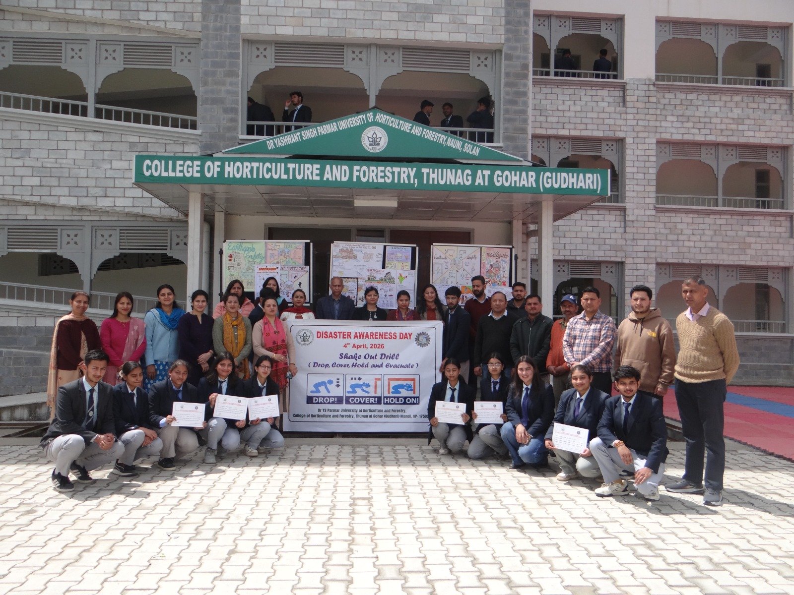 1905 के कांगड़ा भूकंप की 121वीं वर्षगांठ के अवसर पर औद्यानिकी एवं वानिकी महाविद्यालय, थुनाग के गुढ़ारी परिसर में आपदा जागरूकता दिवस आयोजित किया गया। इस अवसर पर छात्रों तथा स्थानीय समुदाय को आपदा तैयारी और जोखिम न्यूनीकरण के प्रति जागरूक किया गया। अधिष्ठाता डॉ पी. एल. शर्मा ने छात्रों से सतर्क रहने, सुरक्षा उपाय अपनाने तथा समाज में आपदा के प्रति जागरूकता फैलाने का आह्वान किया, ताकि आपदा तैयारी और लचीलापन (रिजिलिएंस) की मजबूत भावना विकसित की जा सके।