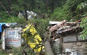 शिमला में भारी बारिश की वजह से मकान पर गिरा पेड़